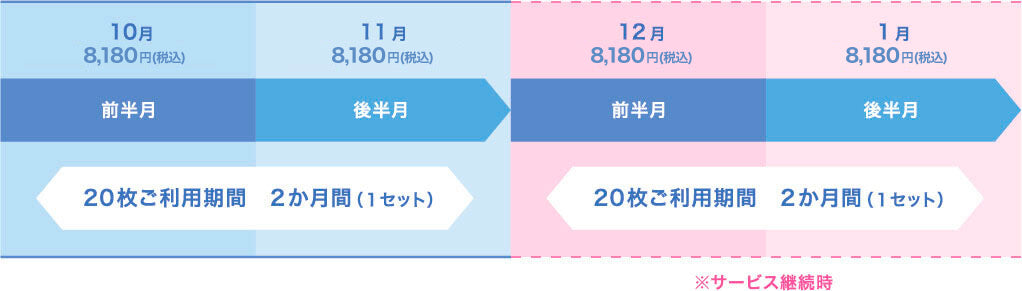 ご契約単位は前半月と後半月の2か月間/1セットからとしており、前半月又は後半月のみのご契約は不可となります。