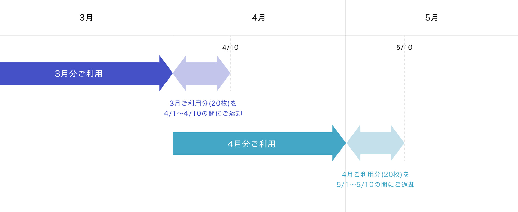 ※1月1日から利用開始の場合、返却期日は3月10日となります。