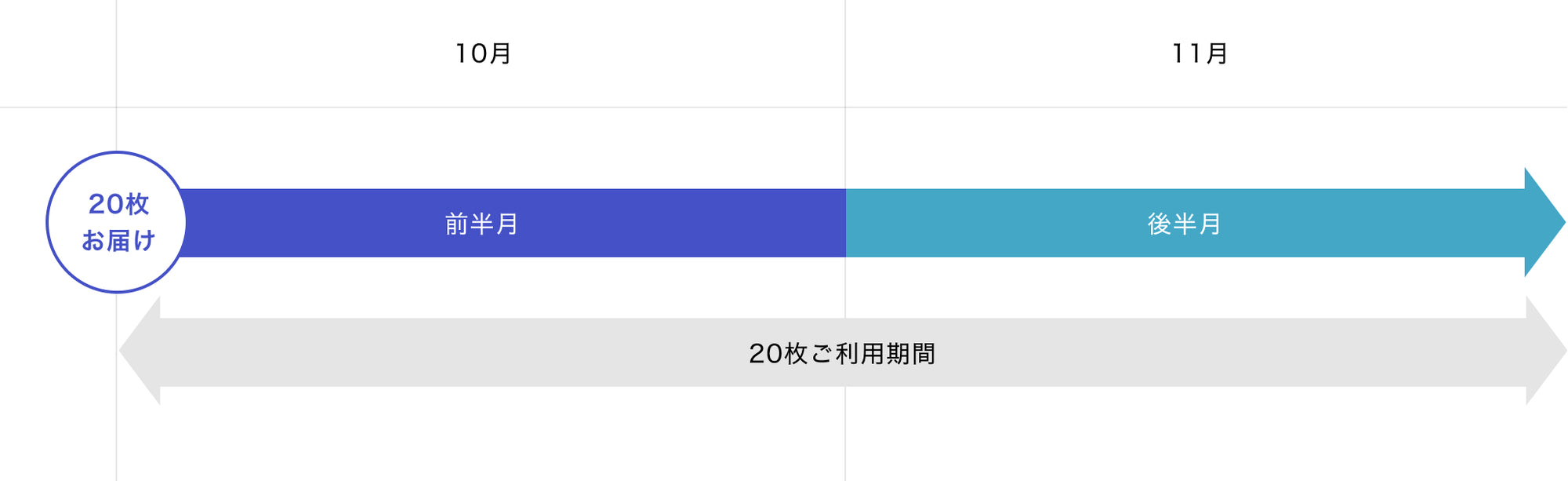 後半月20日以降の申請お手続きの場合は「次回分」のご利用をもって申請手続き適用となります。