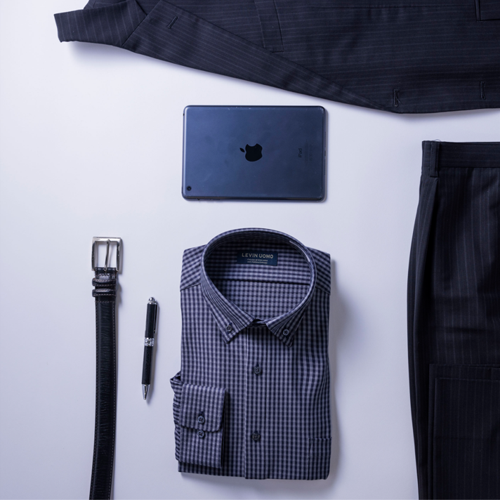 合わせ易く、程よい大きさのギンガムチェック柄は、カジュアル、ビジネススタイルに幅広く使えます。