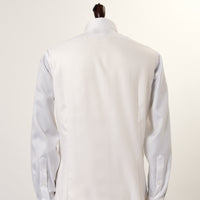 クレリック衿の白が、柄の白とマッチして、クラシカルなイメージを醸し出します。